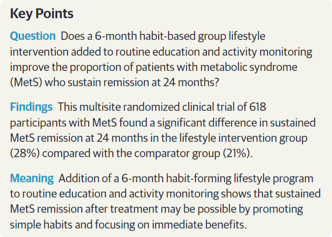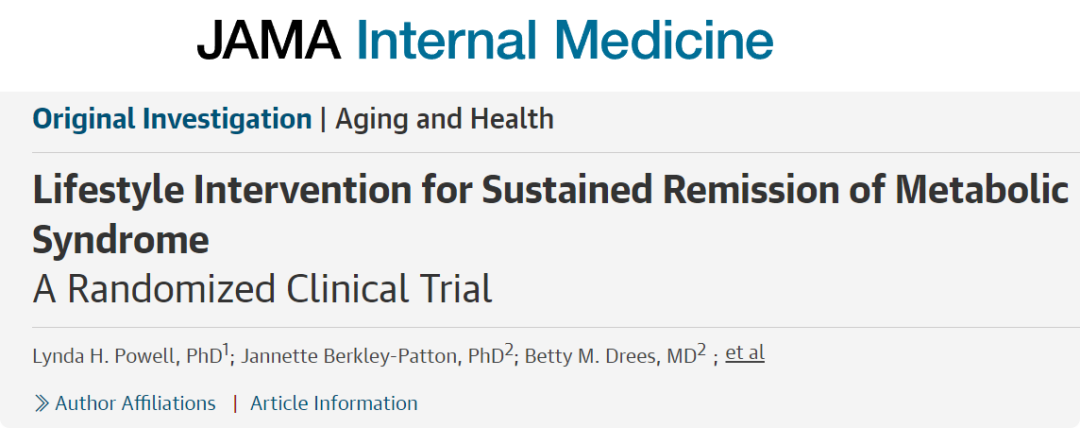 1.Powell LH, et al. 生活方式干预促进代谢综合征持续缓解. JAMA Intern Med. 2025. doi:10.1001/jamainternmed.2025.5900