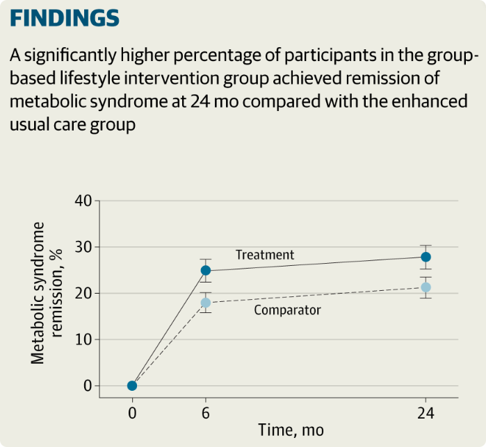 ● 代谢综合征缓解率24.8%,显著高于对照组17.9%;