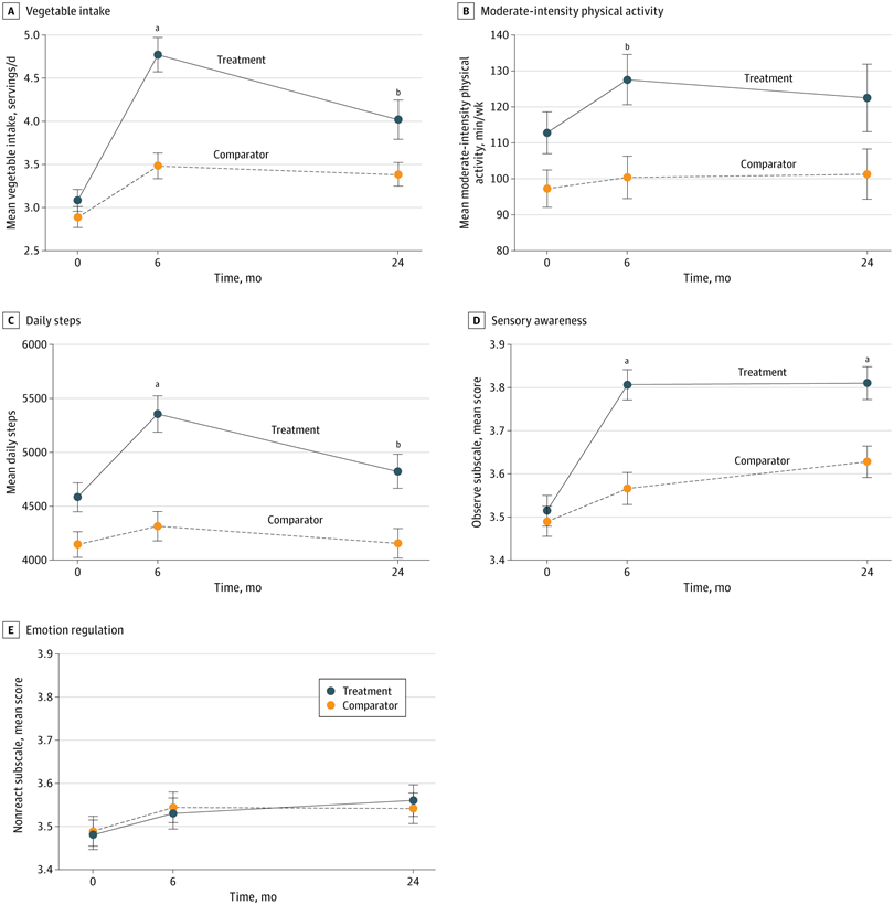 营养师主导的感官觉察训练,重建“食物-身体”联结,唤醒钝化的“七分饱”感知。数据显示,干预组6个月、24个月的感官觉察评分均显著高于对照组,这成为他们长期控制体重的核心能力。