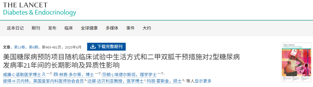 3.Knowler WC, et al. 生活方式干预预防2型糖尿病21年随访. Lancet Diabetes Endocrinol. 2025. doi:10.1016/S2213-8587(25)00089-6